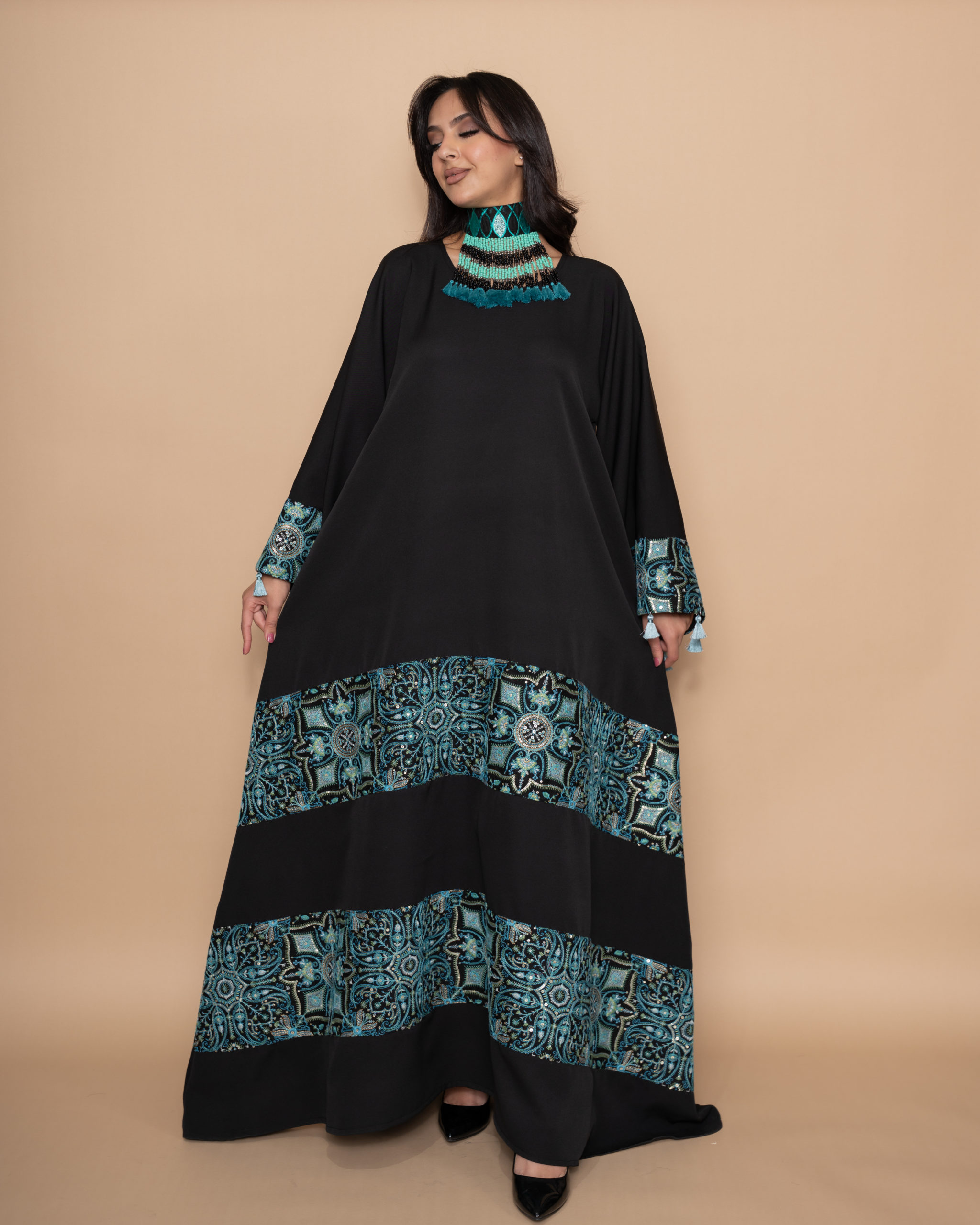 Be the first to review “Black Maxi Dress with Two Lines of Turquoise Embroidery”